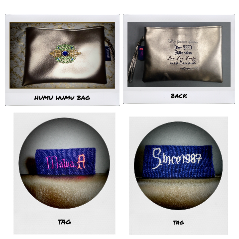 普段お使いになるのはもちろん、ファッションのアクセントにも素敵なクラッチバッグにあなたのお好きなデザインを選んで頂き、おしゃれなフォントで文字をお入れできます。