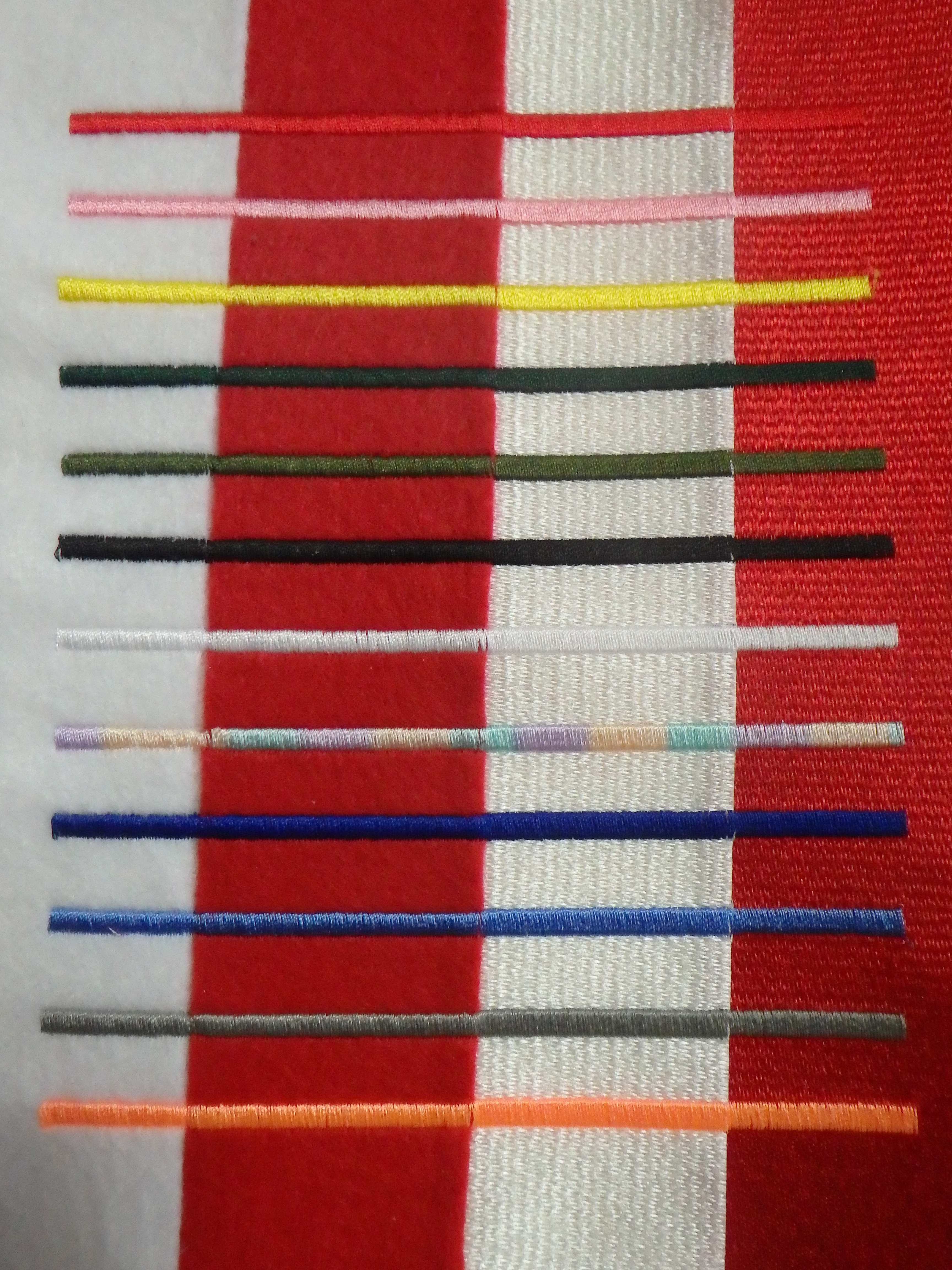 左より 白フェルト生地 赤フェルト生地 白エンブクロス生地 赤エンブクロス生地