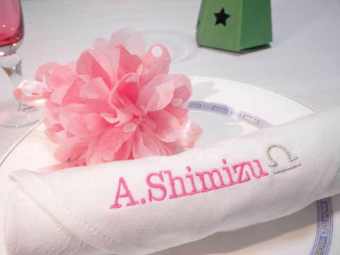 日頃からお世話になっているゲスト様へ、その方のイメージに合わせて名前やイニシャル等の文字を刺繍し席札としてお使いください。