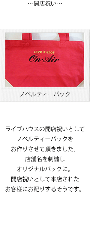 弊社では「お客様のご要望」により様々な商品をお作りしています。こちらではオーダー品、定番品の過去商品を一部ご紹介いたします。
